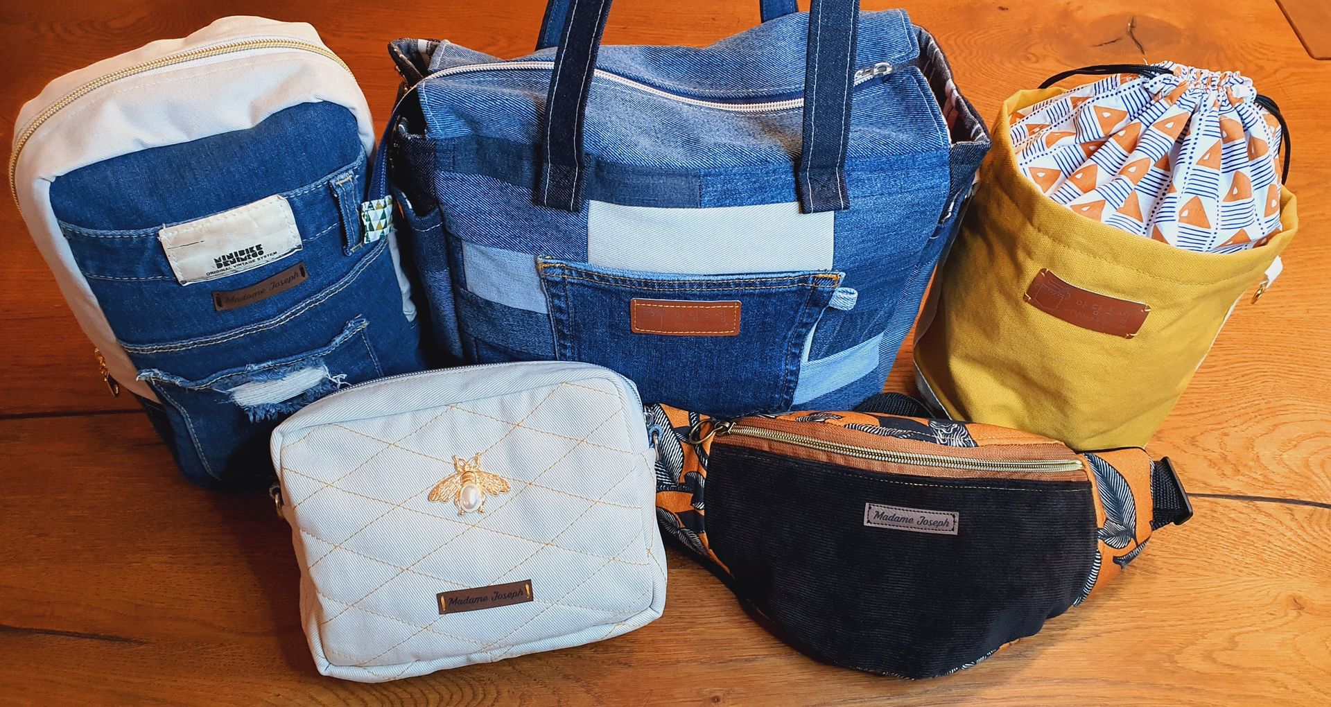 Indeed, having been passionate about sewing for several years, I like to create bags that can suit everyone, especially with jeans. Jeans come in different colors and materials, and I have fun combining them with different accessories or sewing them to create new objects. Thanks to the unique designs, no bag created by Madame Joseph will ever be the same!